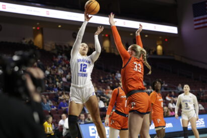 BYU got some separation from the Waves in first quarter, breaking an 8-8 tie with a Mackey-Williams 3-pointer and a pull-up jumper from Falatea. With the quarter winding down, Falatea beat the buzzer with another triple for a 16-10 Cougar lead. She scored 12 in the first half and Gustin added eight points and six rebounds for a 34-27 lead at the break.