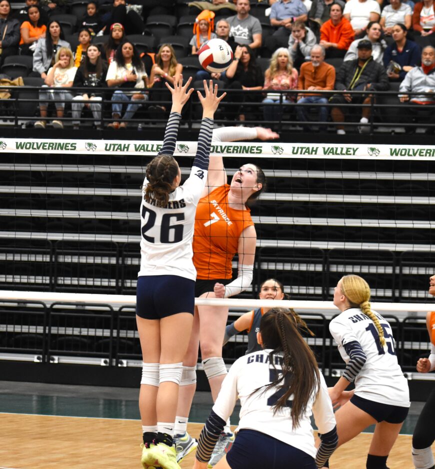 In the other 6A semifinal, No. 1 Skyridge powered through the first two sets with No. 5 Corner Canyon 25-21, 25-22 but the Chargers rallied for a 25-20 victory in Set 3.