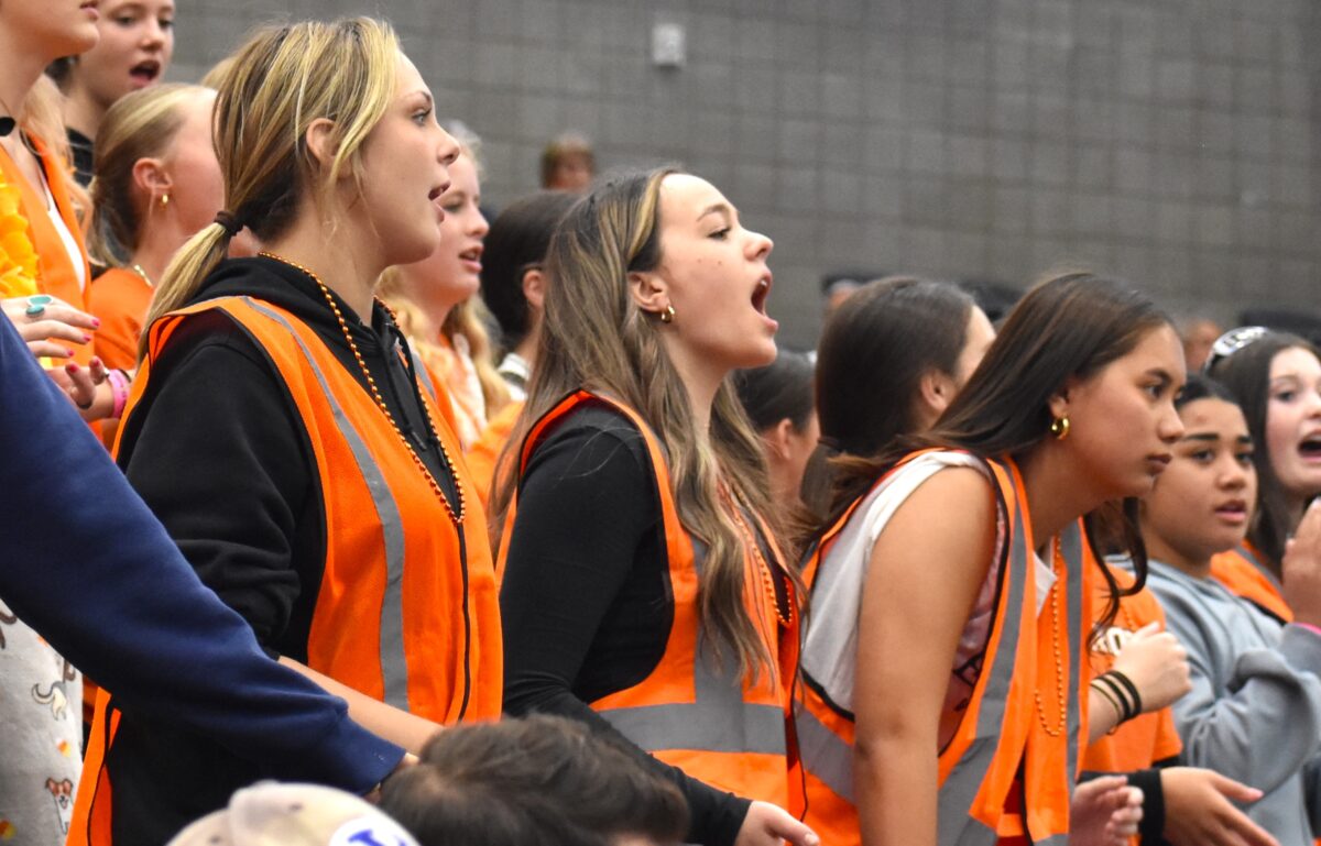 - Students sections for Lone Peak and Skyridge react to a play on the court during the 6A girls volleyball state championship match at the UCCU Center on Saturday, Nov. 4, 2023.
