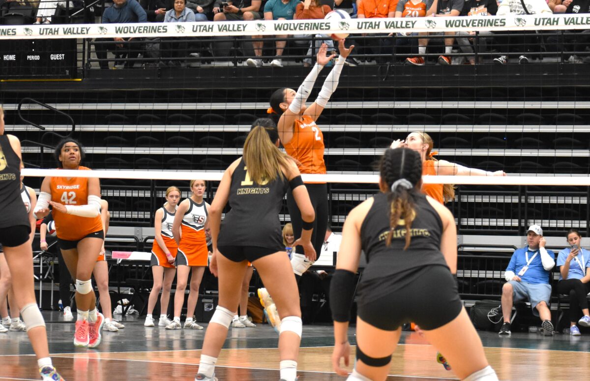 Lone Peak and Skyridge (28-2) split two matches during the regular season, with the Knights winning the first match in a sweep and the Falcons claiming the second in a five-set victory. The championship match settled things for good.