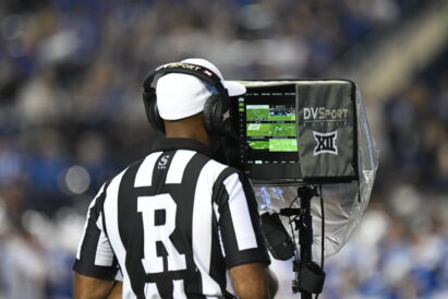 - An official reviews a call during the Big 12 game between BYU and Texas Tech at LaVell Edwards Stadium in Provo on Saturday, Oct. 21, 2023.