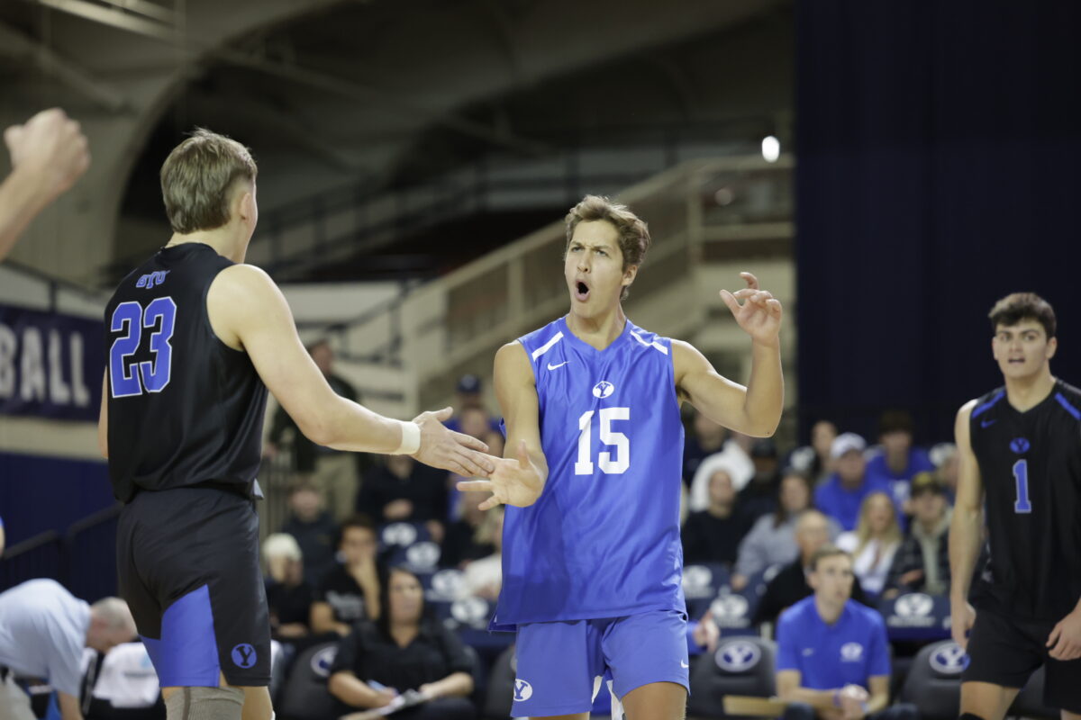 - BYU’s Luke Benson (1) reacts to a point during a men’s college volleyball match against Ball State at the Smith Fieldhouse on Friday, Jan. 5, 2024.