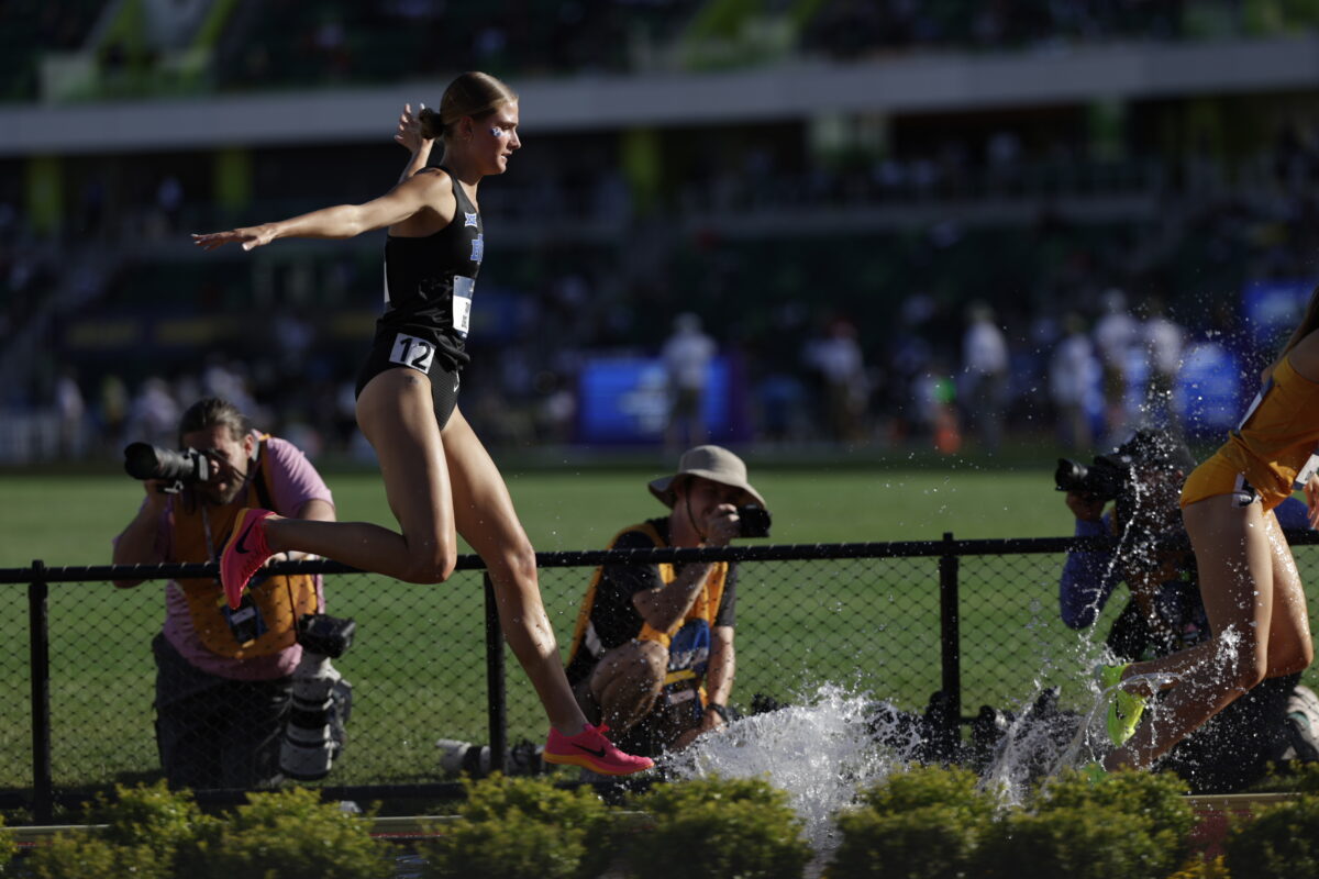 - BYU freshman Taylor Lovell lands a water jump during a 3,000-meter steeplechase semifinal in the NCAA Track and Field Championships at Hayward Field in Eugene, Ore., on Thursday, June 6, 2024.