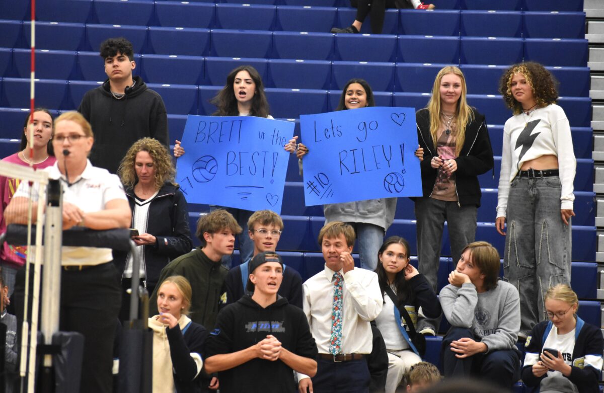 - Salem Hills fans hold signs in support of the boys volleyball team during a Region 7 match against Maple Mountain on Tuesday, May 7, 2024.