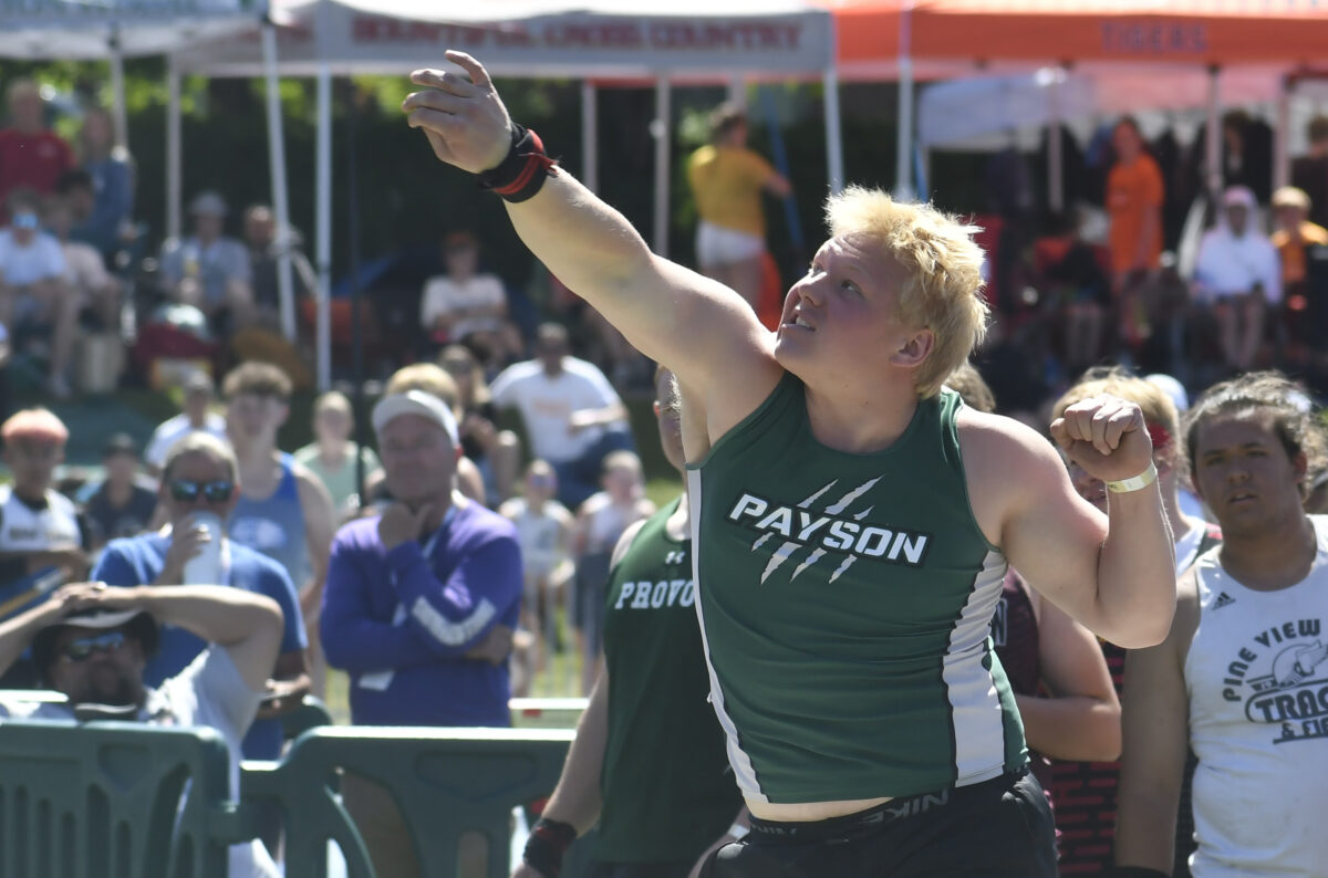 - Payson senior Zayden Cook competes in the 4A boys shot put competition at the state track and field meet at BYU on Saturday, May 19, 2024.