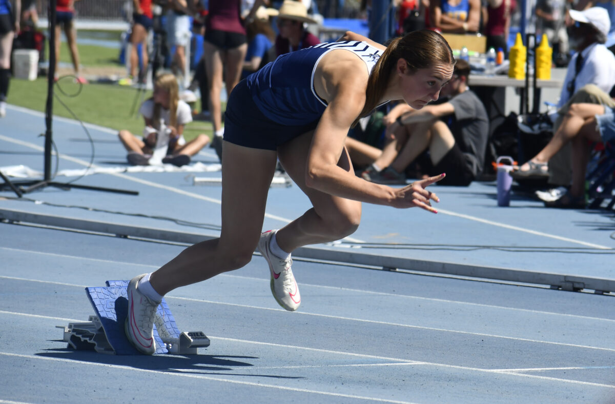 - Timpanogos senior Bria Anderson starts the 4A girls 400-meter race at the state track and field meet at BYU on Saturday, May 19, 2024.