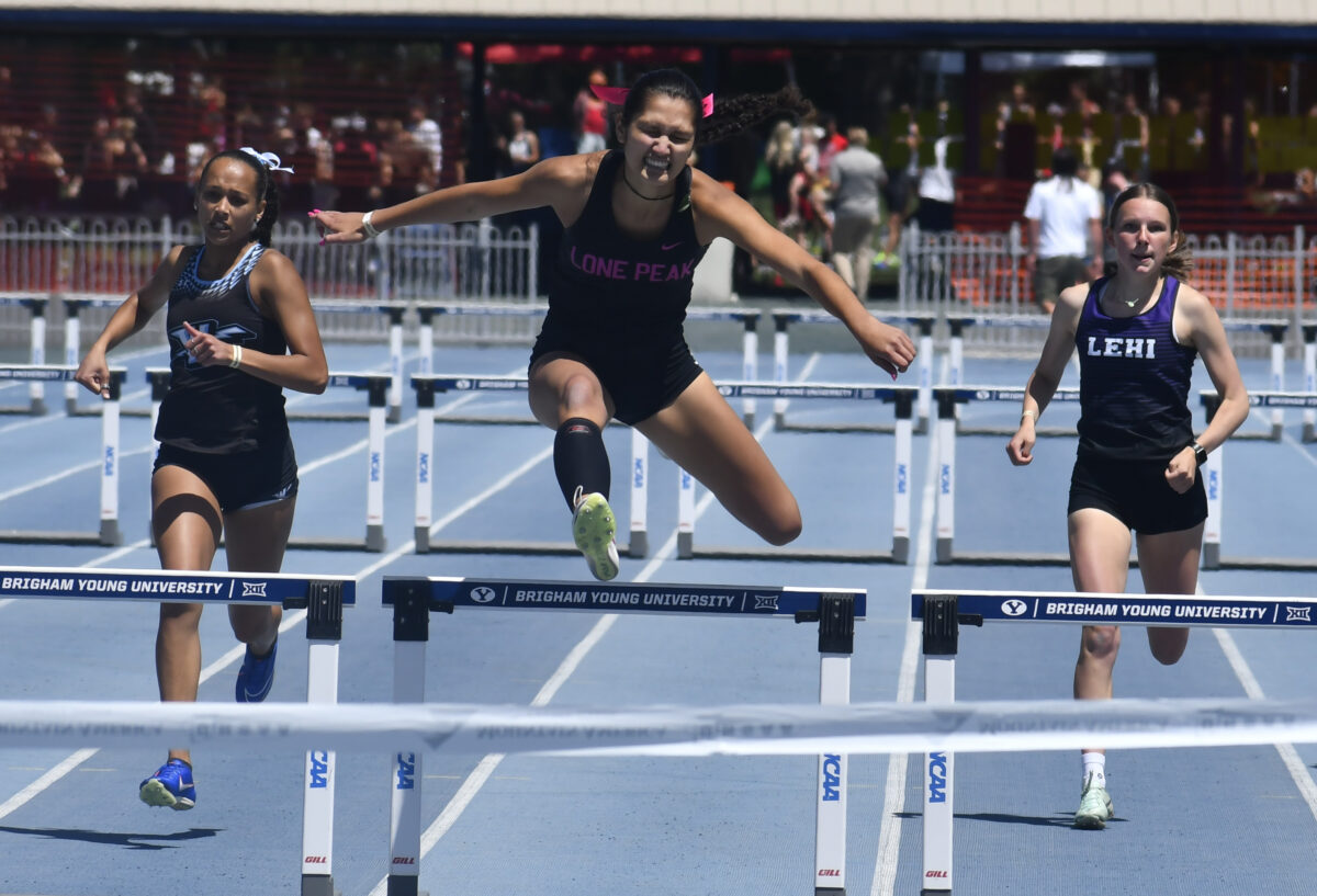 - Lone Peak senior Nadia Chiara competes in the 6A girls 300-meter hurdles at the state track and field meet at BYU on Saturday, May 19, 2024.
