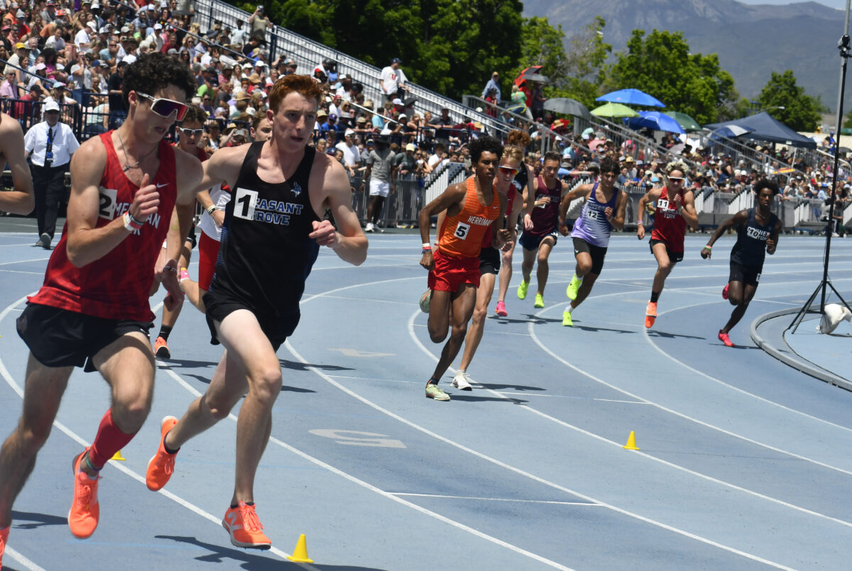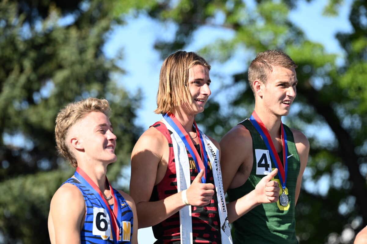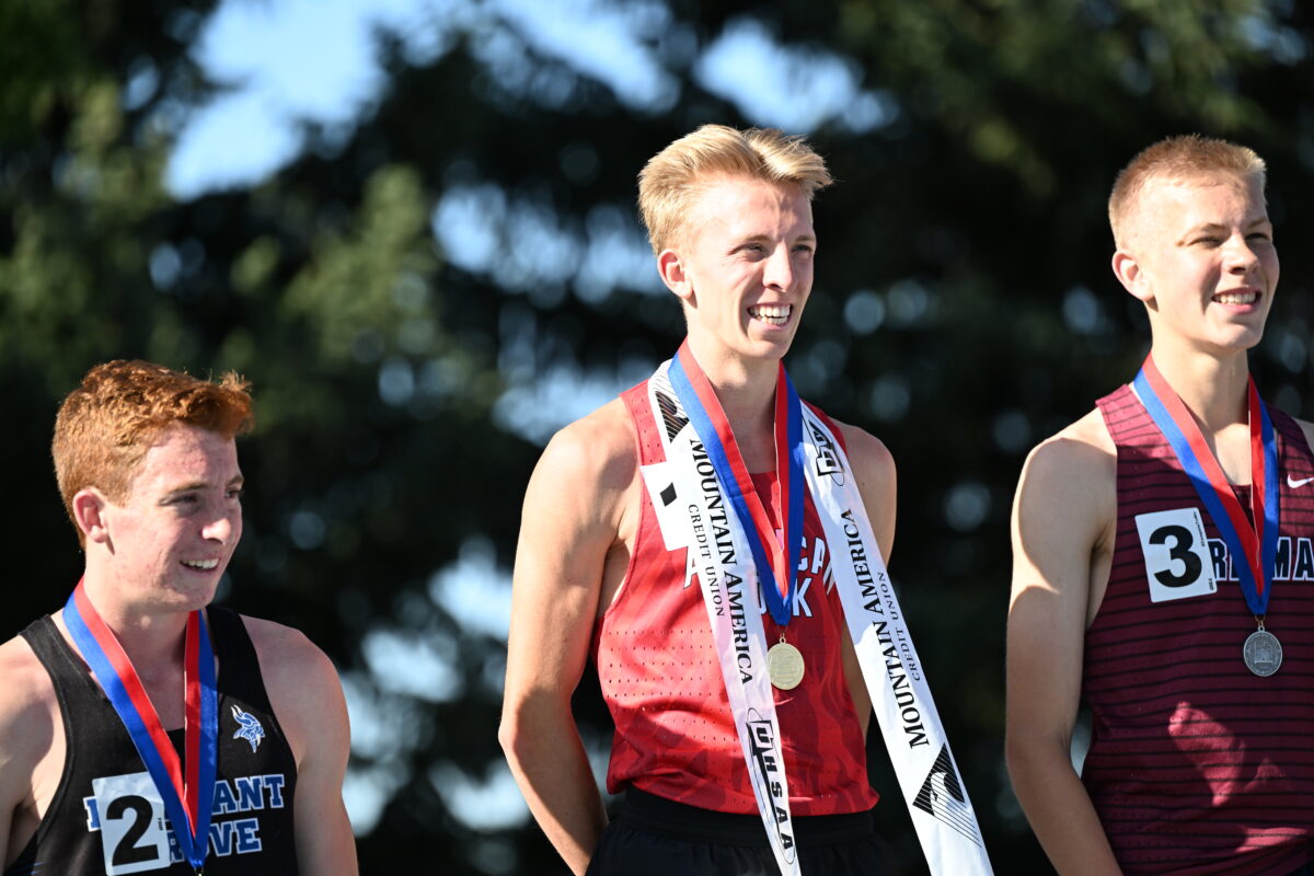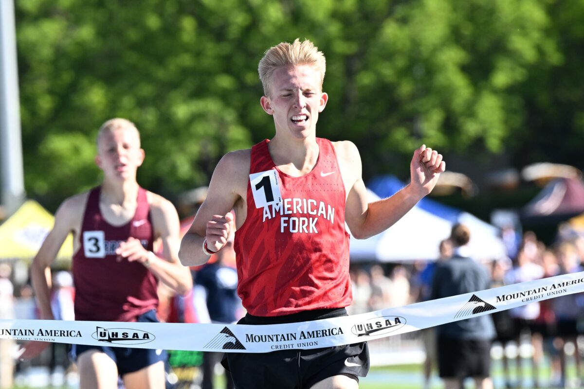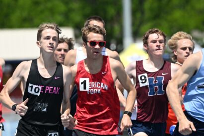 In the boys competition, American Fork star Daniel Simmons capped his stellar career as he broke the state record in the boys 1,600 meters (4:01.27) and the 3,200 meters (8:36.79), as well as being part of the winning boys 4×800 relay team (along with junior Ryker Bement, junior Kaden Evans and senior Noah Nielson).