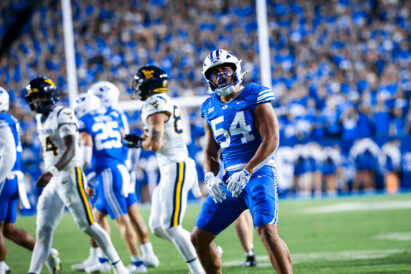 BYU sophomore cornerback Therrian Alexander set the tone with a well-played interception that was almost returned for a touchdown. West Virginia didn’t present much through the air, but the Cougar defensive backs largely made certain no extraordinary gains were made. Tanner Wall made a great play on a tipped ball late for his own interception while fellow safeties Raider Damuni and Faletau Satuala continue to make big plays out of the defensive backfield. The third defensive back unit was torched late, however, leading to a West Virginia touchdown and a mark against the general defensive back grade.