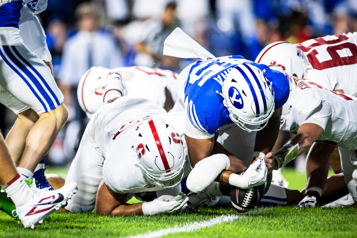 - BYU defensive lineman Viliami Po’uha recovers a fumble in his team’s win over Stanford