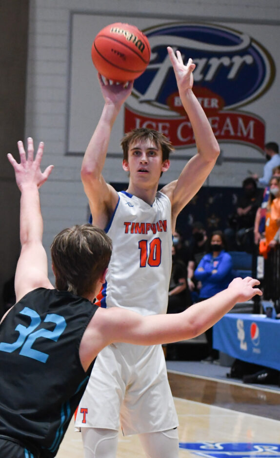 Timpview senior forward Jake Wahlin shoots a 3-pointer during the 5A semifinal game against Farmington at Salt Lake Community College in Taylorsville on Friday, March 5, 2021.