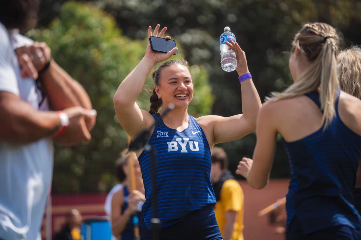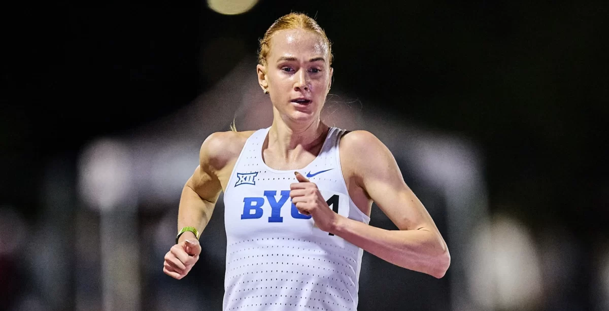 BYU's Jane Hedengren at the tail end of her record-breaking run during the Bryan Clay Invitational over the weekend. April 17, 2026