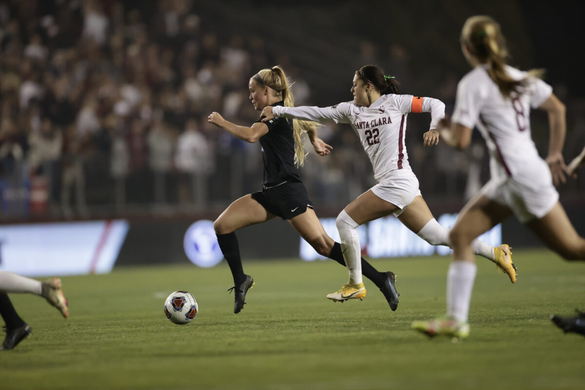 Santa Clara junior forward Izzy D’Aquila had a couple of great opportunities in the first half, while the Broncos also had a long shot after the break that BYU keeper Cassidy Smith had to be careful with to keep from carrying it into the goal.