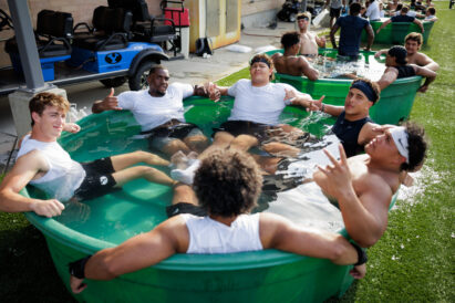 - BYU football players recuperate in ice baths after practice in Provo on Thursday, Aug. 8, 2024.