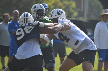 “It’s great,” BYU junior offensive lineman Weylin Lapuaho said. “It’s just high competition. Every day you are coming out and you’ve got to make sure you have your chinstrap buckled up because it’s going to be a war out there.”