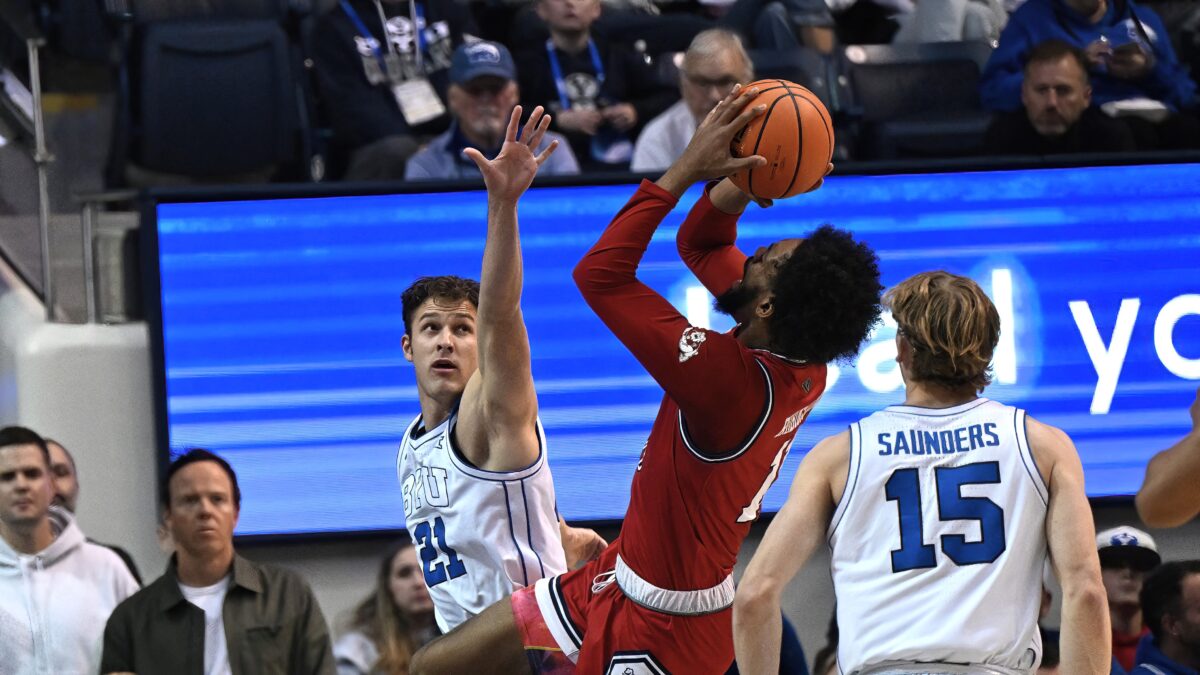 No. 1 recruit A.J. Dybantsa was in attendance at the Marriott Center on Wednesday and received an ovation from Cougar fans during his halftime introduction. Dybantsa has signed his letter of intent to play for BYU next season.