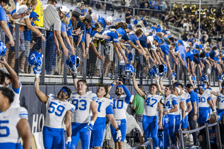 BYU players celebrate with the Cougar fans after the Big 12 game against UCF at FBC Mortgage Stadium in Orlando on Saturday, Oct. 26, 2024.Here are our weekly power rankings of Big 12 teams with a look at their schedules and matchups.