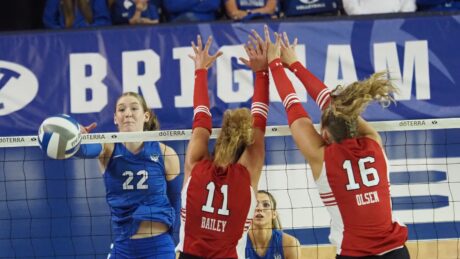 At 12-12, Strong and Alex Bower combined on a block to push the Cougars in front 13-12. BYU didn’t have any ace serves in the first four sets but had four in the fifth, including two from Hannah Billeter. Her second ace was a big one, forging a 14-12 BYU lead and match point. The Utes attack went wide and the Cougars had their big victory.