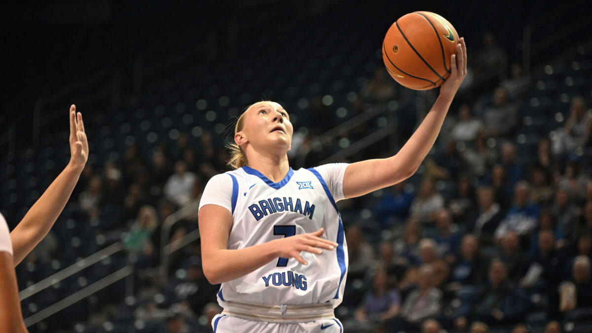 - BYU’s Olivia Hamlin goes in for a layup against Idaho State in a women’s college basketball game at the Marriott Center on Thursday, Dec. 11, 2025.
