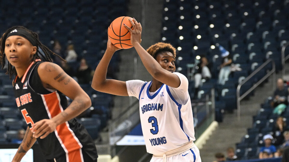 - BYU’s Bola Yussuf (3) looks for a teammate in a women’s college basketball game against Idaho State in the Marriott Center on Thursday, Dec. 11, 2025.
