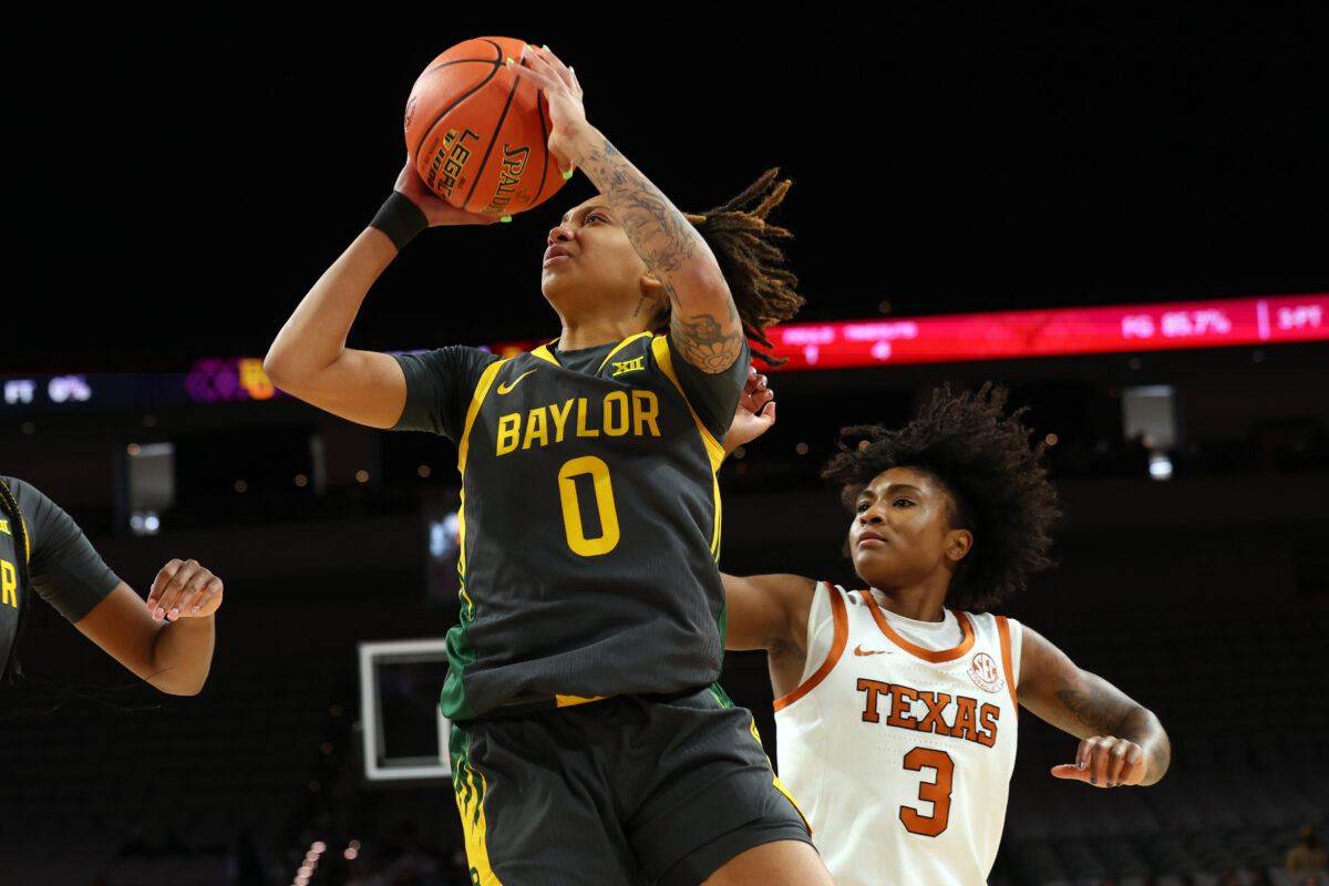 - Baylor guard Taliah Scott (0) shoots against Texas guard Rori Harmon (3) during an NCAA basketball game on Sunday, Dec. 14, 2025, in Fort Worth, Texas.