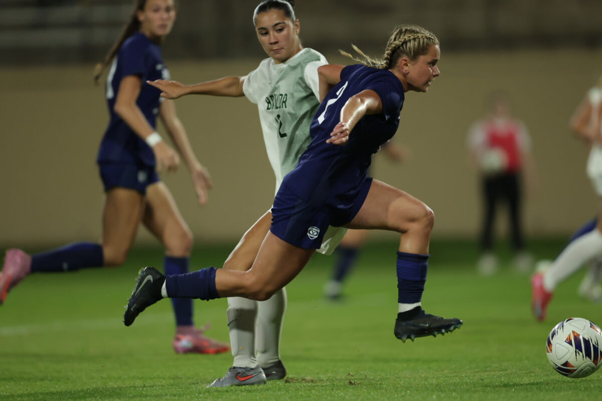 The back-and-forth on the pitch continued with the teams exchanging times of possession. In the 21st minute, Mackenzee Vance took on her defender and took a left-footed shot from the top of the 18-yard box, saved by a diving Baylor goalkeeper.
