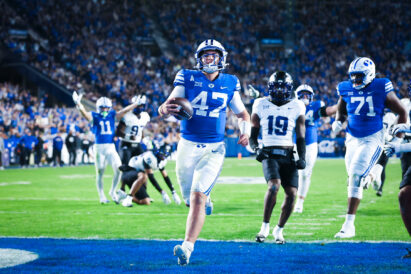 Bear Bachmeier recovered from his poor showing last week at Texas Tech, completing 23 of 33 for 296 yards and a touchdown while rushing for another score. LJ Martin carried the ball 21 times for 88 yards and a score and tight end Carsen Ryan also shined, with four catches for 79 yards, including a 46-yard touchdown.