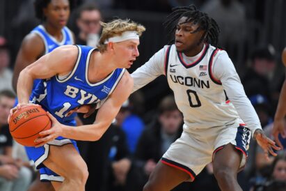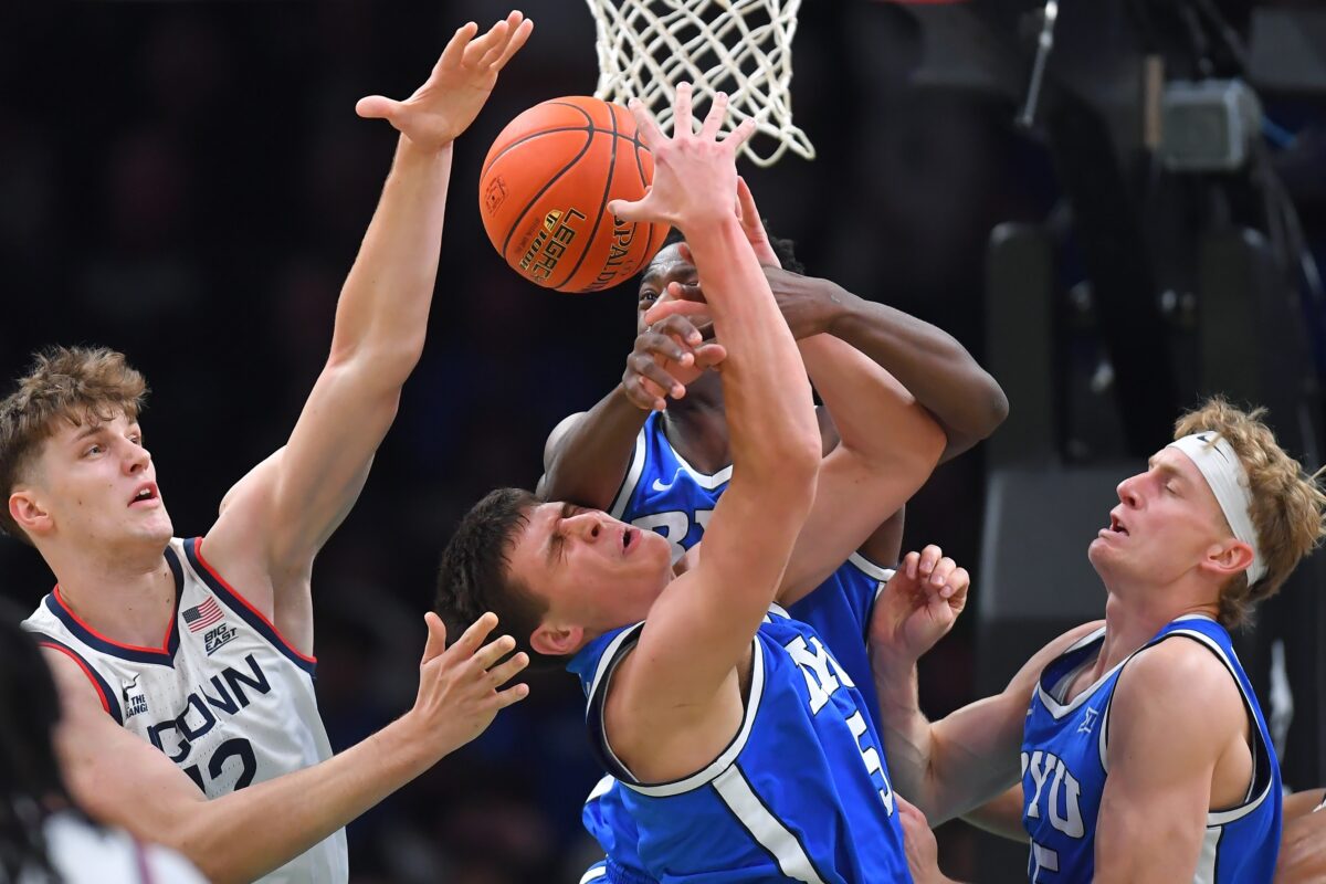 Down two starters midway through the first half against No. 3 UConn on Saturday at Boston’s TD Garden, the No. 7 BYU men’s basketball team predictably fell behind big.