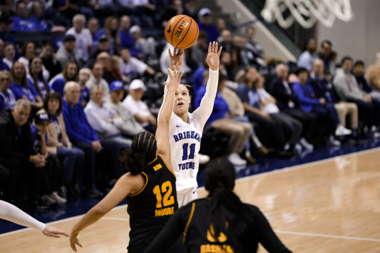BYU's Delaney Gibb (11) takes a shot against Arizona State in a Big 12 women's basketball game at the Marriott Center on Saturday, Feb. 22, 2025.IRVING, Texas — BYU sophomore guard Delaney Gibb was unanimously named to the Preseason All-Big 12 Team, the Conference announced on Thursday. The Cougars were picked 10th in the preseason coaches poll.
