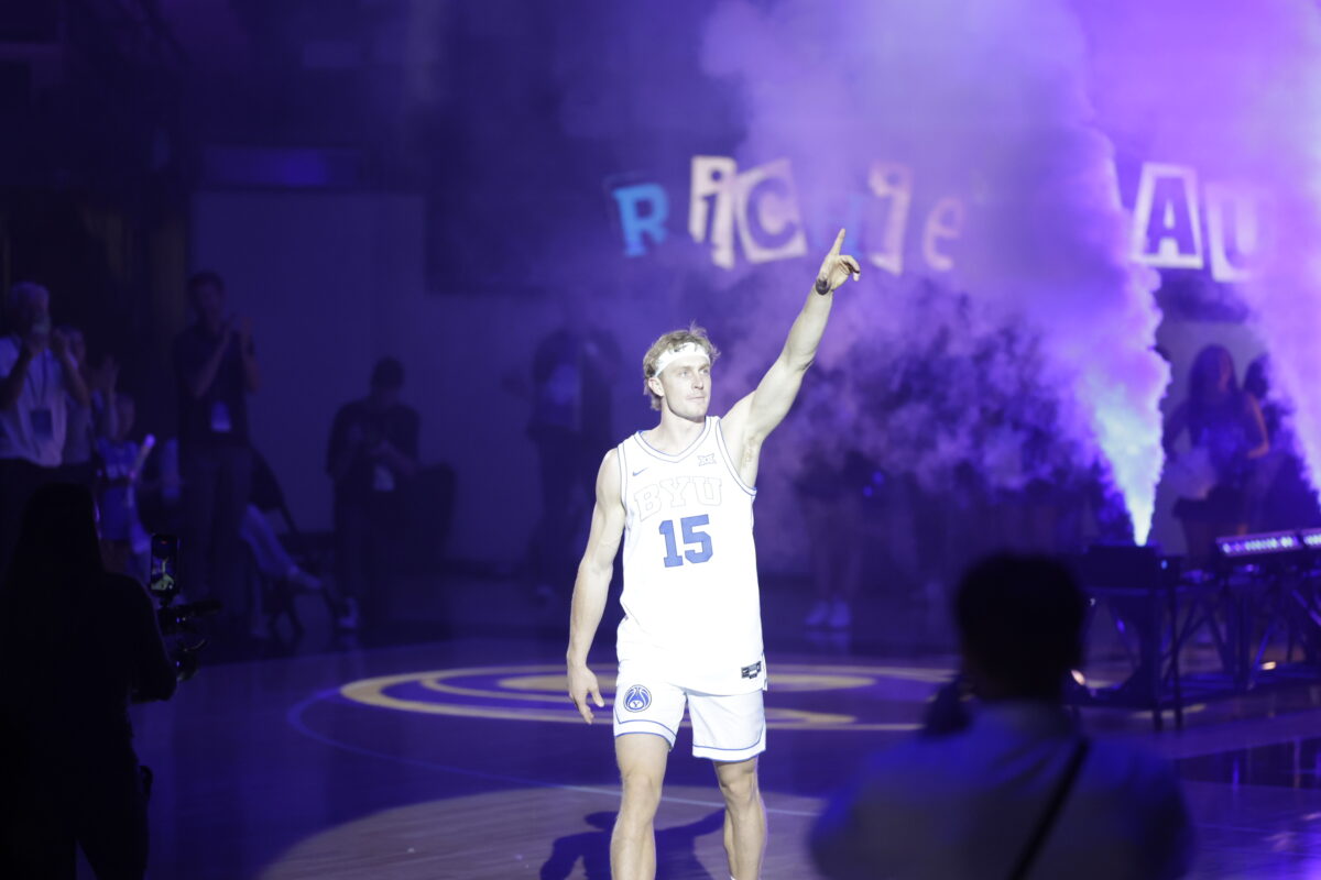 - BYU’s Richie Saunders is introduced at the “Marriott Madness” preseason event at the Marriott Center on Thursday, Oct. 9, 2025.