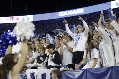 - BYU football fans cheer on their team during the 27-17 Cougar win over Arizona State at LaVell Edwards Stadium in Provo on Saturday, Sept. 18, 2021. (Jaren Wilkey, BYU Photo)