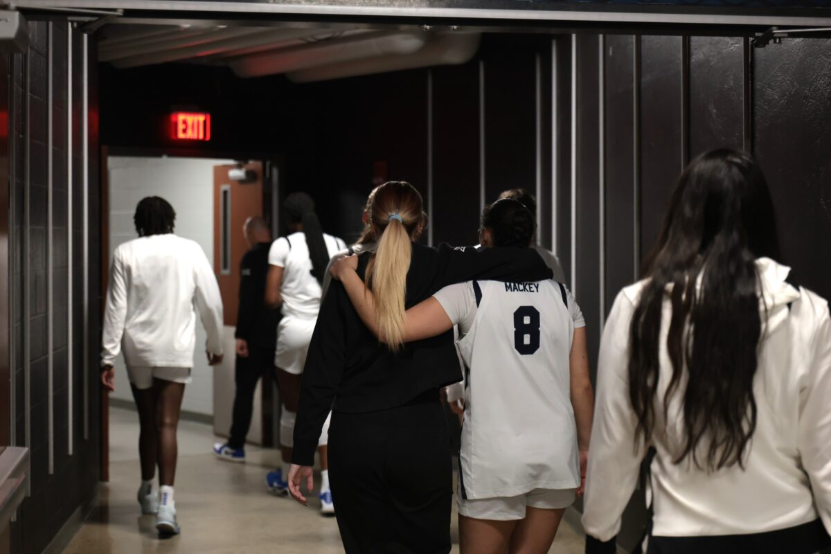 - BYU’s Arielle Mackey-Williams (8) walks off the court with her arm around a teammate after an 81-64 loss to Columbia in the WBIT Championship Game at Koch Arena in Wichita, Kan., on Wednesday, April 1, 2026.