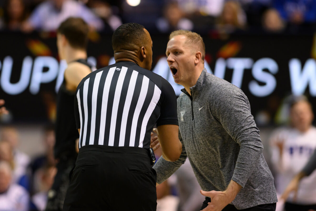 - BYU head coach Kevin Young, right, argues with a referee during the second half of an NCAA college basketball game against Colorado, Saturday, Feb. 14, 2026, in Provo, Utah.