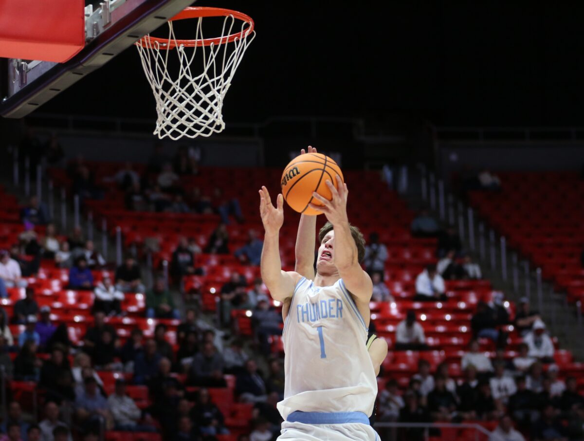 - Thunder forward Lincoln Norwood scores two of his nine points during his team’s 82-67 win over Lone Peak on Wednesday. February 25, 2026