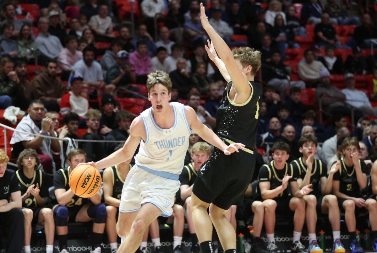 Lone Peak recovered and outscored the Thunder 12-4 over the next five minutes, including a pair of 3-pointers from Saxon Young, and trailed by just one, 32-31, at halftime.