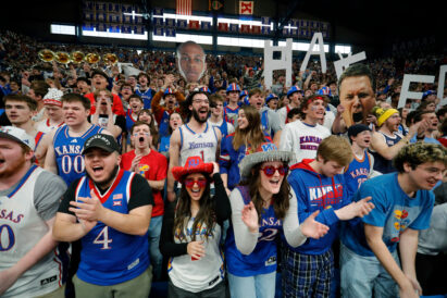 - Kansas fans react during first half of an NCAA college basketball game against BYU, Saturday, Jan. 31, 2026, in Lawrence, Kan.