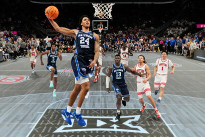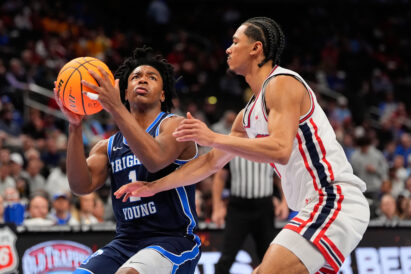 Keita put BYU’s first two points on the board with a pair of free throws but Dybantsa and Wright combined to score the blue Cougars’ next 28 points. Houston led by as many as nine (23-14) but BYU battled back and took its first lead, 33-32, on a 3-point play from Kennard Davis Jr. Aleksej Kostic banged in back-to-back 3-pointers and Dominique Diomande converted a Houston turnover into a windmill dunk, pushing BYU to a 41-34 advantage. The blue Cougars gave up a 3-point play with under a second to play and took a 41-37 lead into the break.