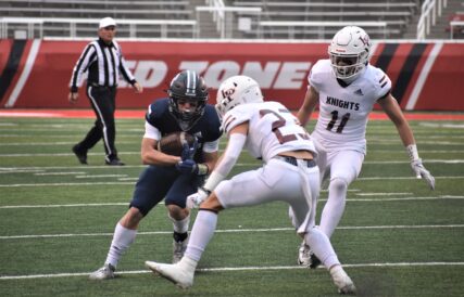 The first came with the shootout tied at 42-42 and just two-and-a-half minutes left in the game. The Knights faced a third-and-10 from the Corner Canyon 41-yard line.