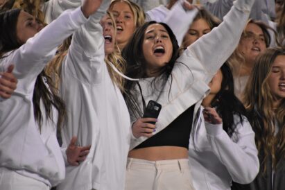 - Lone Peak fans cheer from the stands during the 6A state championships against Corner Canyon at Rice-Eccles Stadium in Salt Lake City on Friday, Nov. 19, 2021. (Darnell Dickson/Daily Herald)