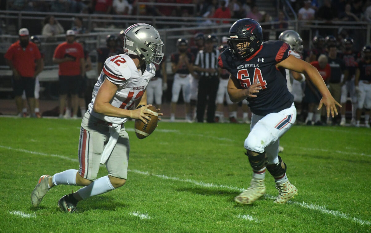 Spanish Fork then stripped the ball from the Red Devil returner on the ensuing kickoff, putting the ball in Stevenson’s hands again with another short field.