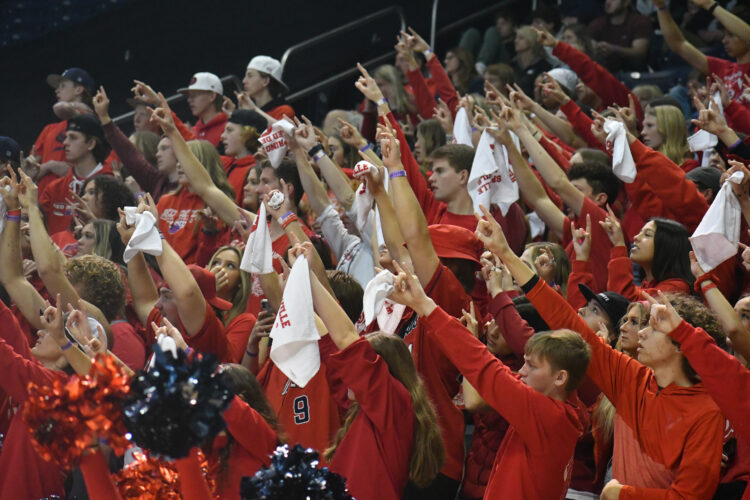 Springville fans cheer on their team during the 5A championship game against Lehi at the Marriott Center in Provo on Saturday, March 5, 2022. (Jared Lloyd, Daily Herald)