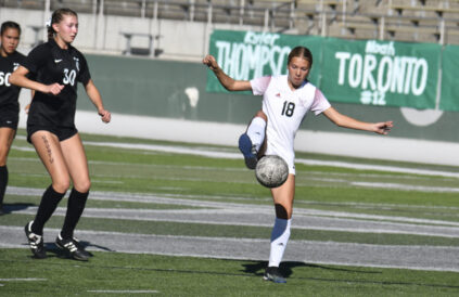 The Titan keeper appeared to have it in her sights but she couldn’t haul it in, allowing it to drop right to where King was charging in. The Cedar Valley junior booted it past the desperately lunging Olympus defenders and into the back of the net for the only goal of the game.