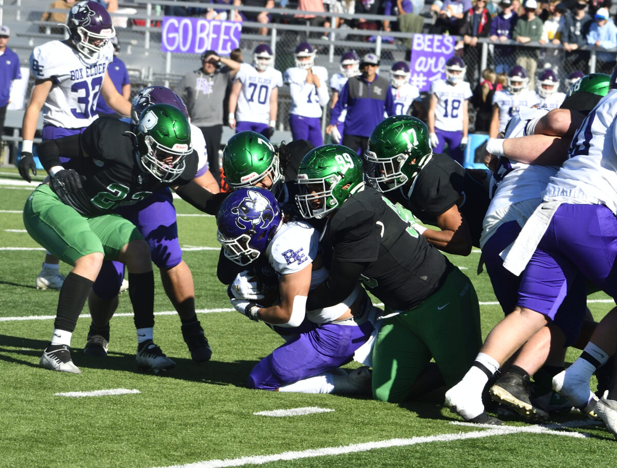 Provo advanced it out to midfield with just four seconds left, but after a complete pass and a series of laterals, the ball finally ended up on the ground in the hands of Bulldog offensive lineman Strantz Mangisi, who tried to keep the play alive with a lateral of his own, but the desperation play was ruled dead by the officials and Box Elder’s players stormed the field to celebrate its upset win over No. 8 seeded Provo.