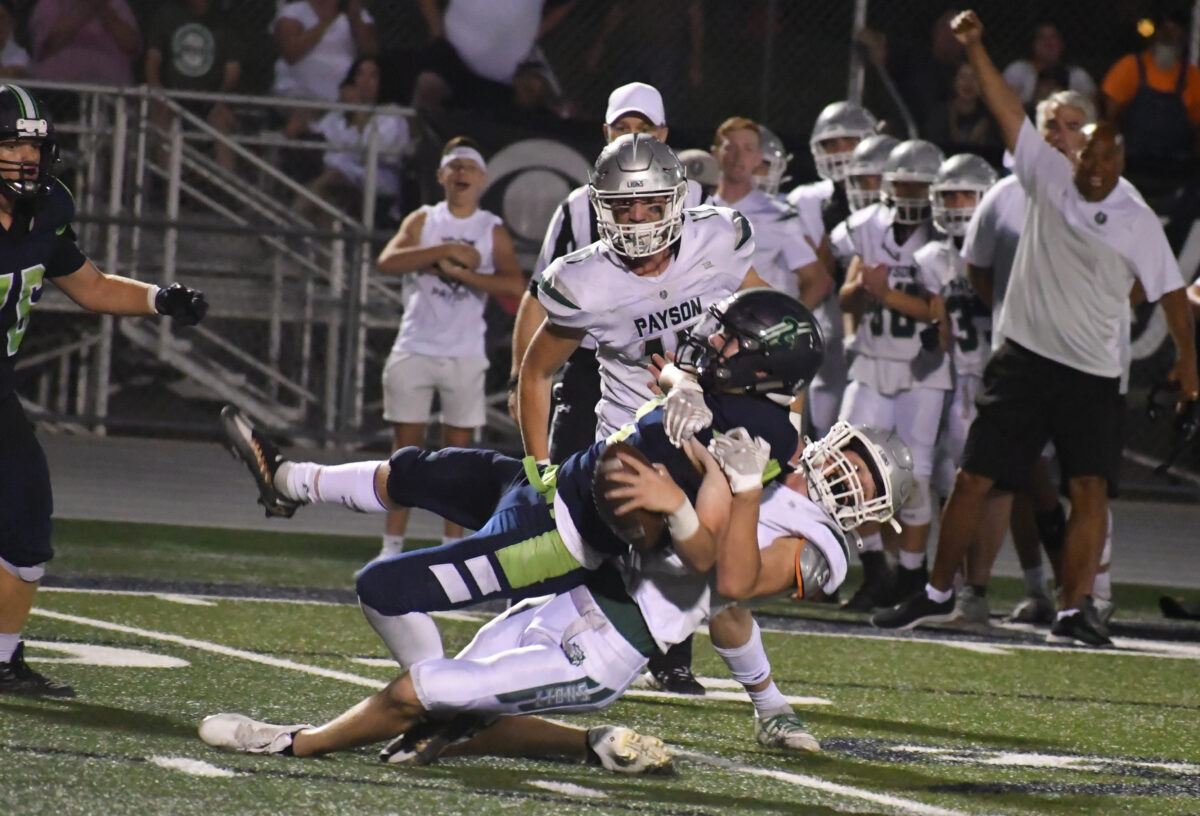 - The Payson defense gets a sack during the Region 7 game against Timpanogos in Orem on Thursday, Sept. 8, 2022.