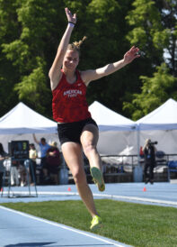 - American Fork senior Sophie Swindle competes in the 6A girls long jump on the first day of the 2023 state track meet at the Robinson Track and Field Complex in Provo on Thursday, May 18, 2023.