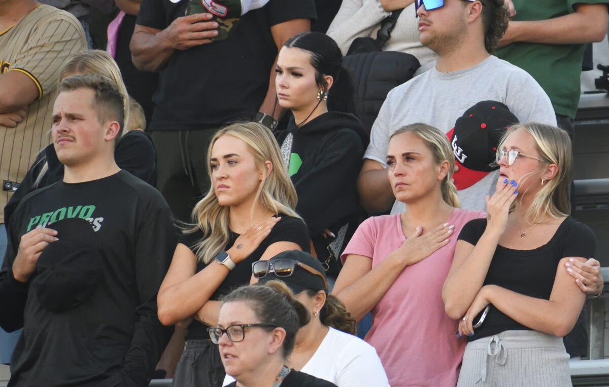 - Provo fans stand and wipe away tears during a moment of silence in remembrance of Alycia Weir before the Region 8 game against Timpanogos at Provo on Friday, Sept. 15, 2023. Weir died in a car accident earlier in the week.