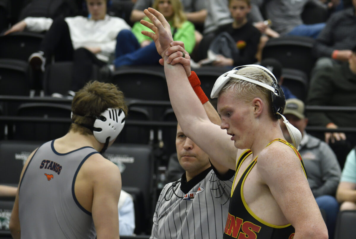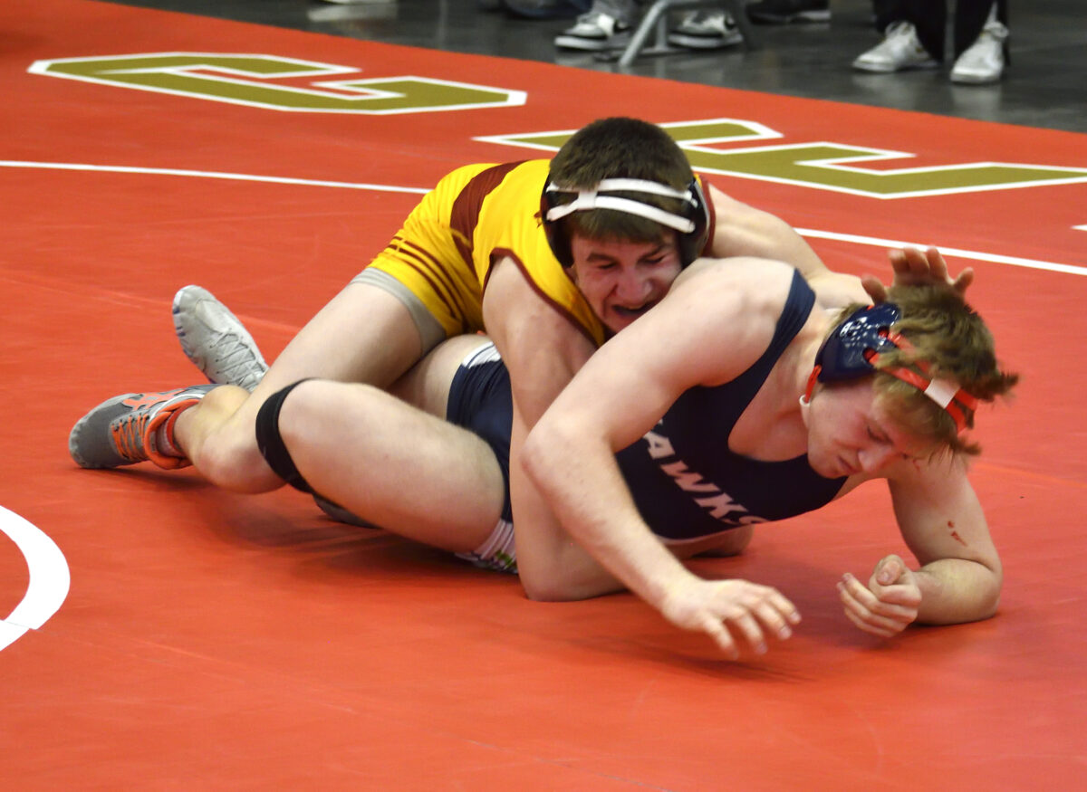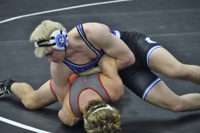 Returning state champion Henry Hanseen (157) was dominant in his two bouts winning by pin while his younger brother Wyatt, just a freshman, also won by pin and now faces Cedar Valley’s Jayce Wandell in the semifinals at 165 pounds.
