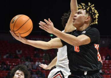 - Timpview sophomore Dean Reuckert goes up for a shot during the 5A semifinal game against Alta at the Huntsman Center in Salt Lake City on Tuesday, Feb. 27, 2024.