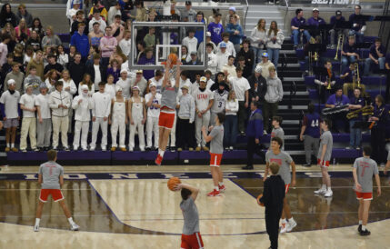 - American Fork players warmup in front of the Lehi student section before the Region 3 game at Lehi on Friday, Jan. 12, 2023.
