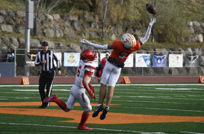 - Springville junior Zack Henderson catches a pass while Timpview junior Braxton Wilkerson tries to make a play on the ball during the 5A second round game in Provo on Friday, Nov. 1, 2024.